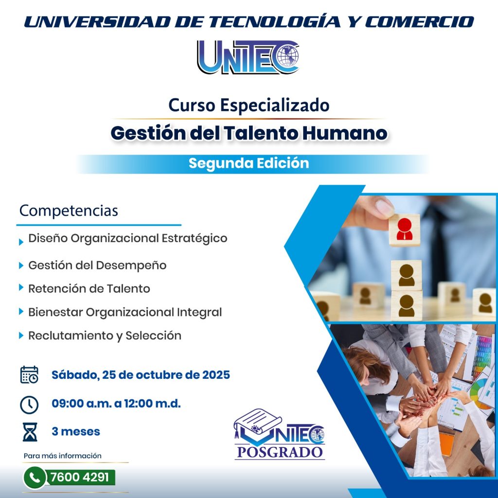 Inscríbete en esta segunda edición del curso especializado en Gestión del Talento Humano y aprende estrategias clave para optimizar la gestión del talento en tu empresa, alineando la estructura organizacional y los procesos de selección y desarrollo con la misión y visión de la organización. Inicio: sábado, 25 de octubre