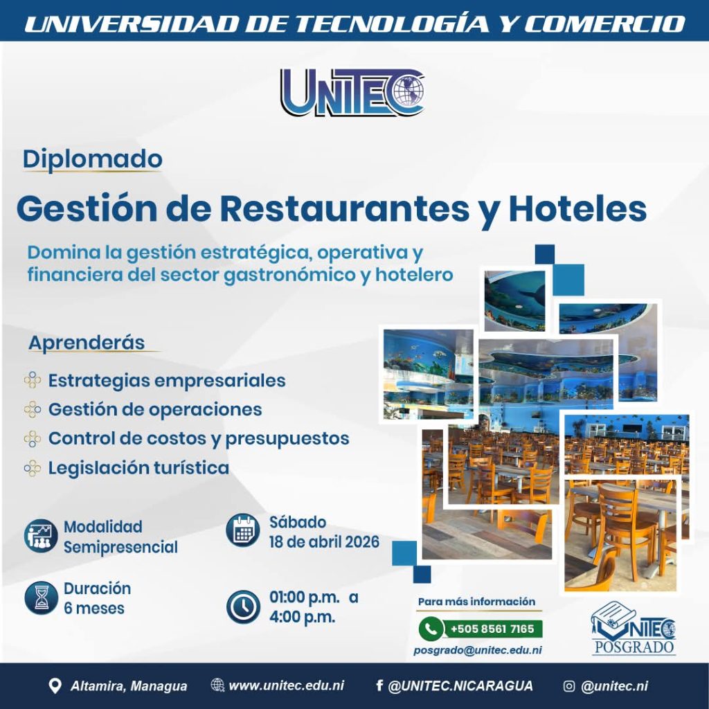 Convierte tu experiencia en el sector gastronómico y hotelero en resultados reales y rentables. Este diplomado está diseñado para quienes desean optimizar operaciones, reducir costos y gestionar negocios con visión estratégica. Aprenderás a: Inicio: 18 de abril de 2026 Duración: 6 meses Modalidad: Semipresencial Cupos limitados Solicita información y asegura