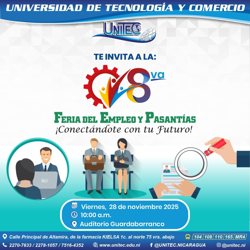 La Universidad de Tecnología y Comercio (UNITEC) se complace en invitar al público en general a la 8.ª Edición de la Feria del Empleo y Pasantías 2025.