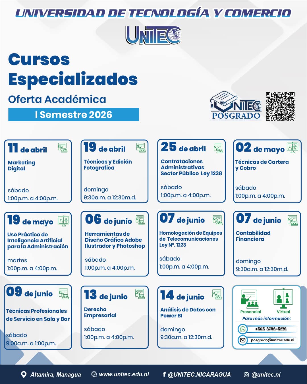 Más información: Teléfonos: +505 5788-3255 | +505 8729-1338 Correo: vinculacion@unitec.edu.ni